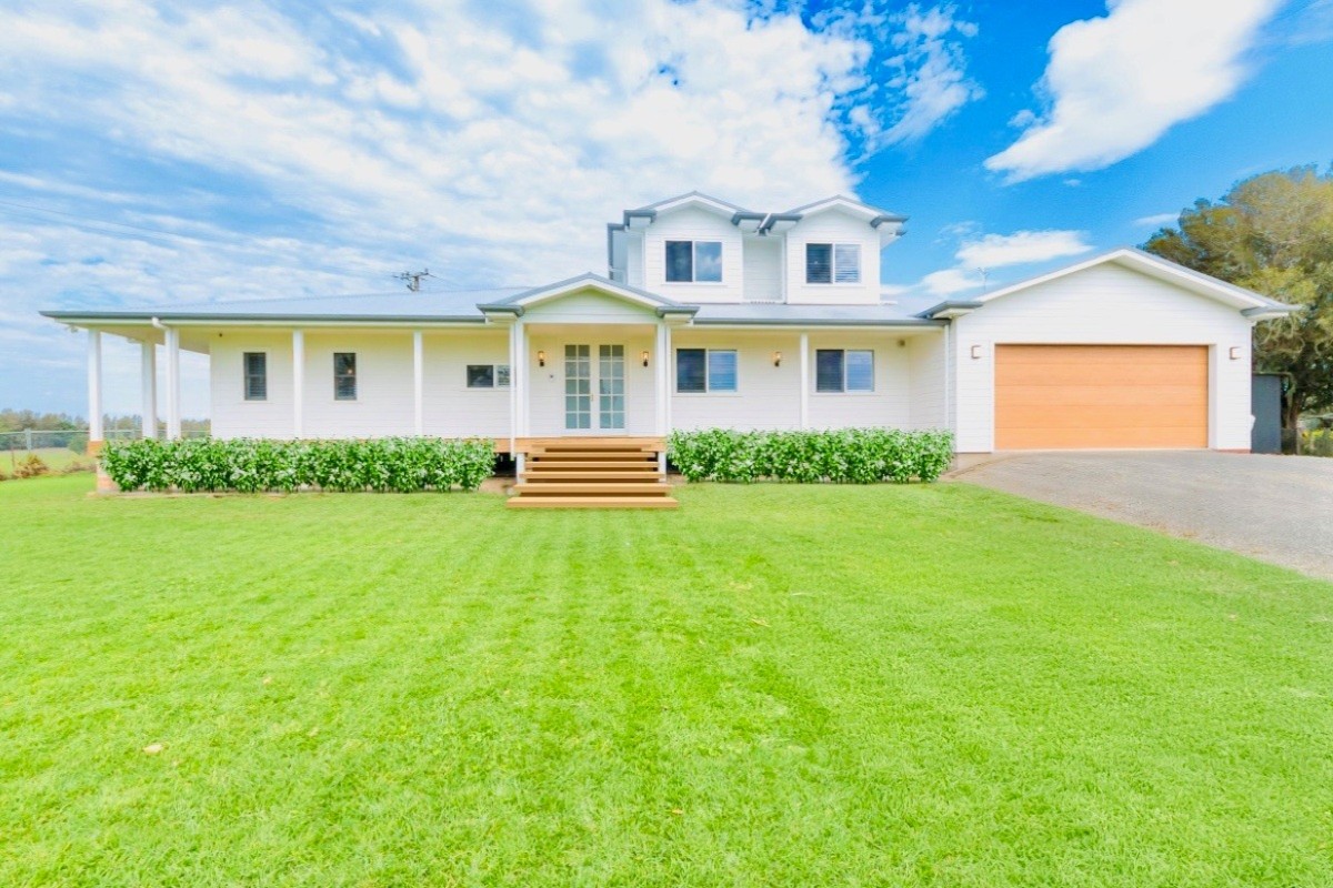 This split level contemporary meets country home features four bedrooms plus large office, three living areas.
